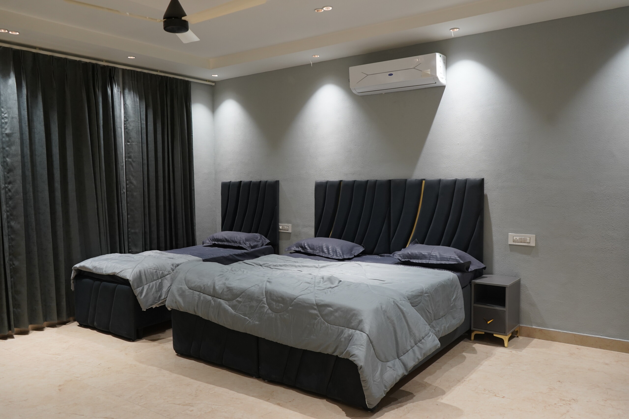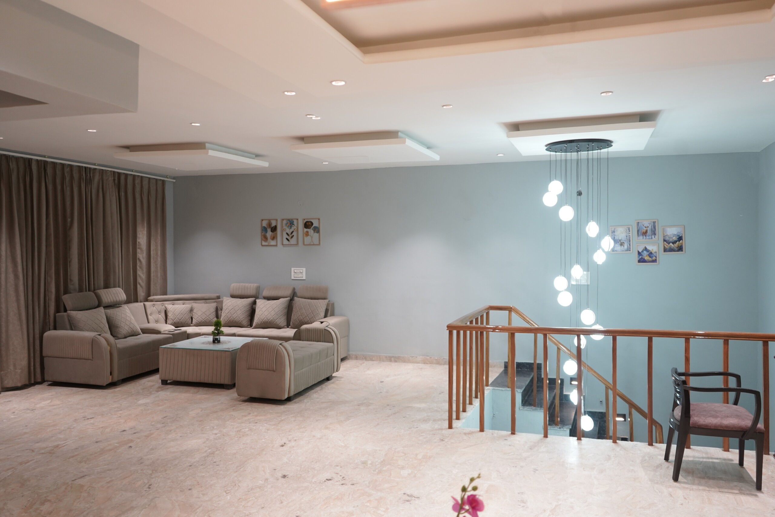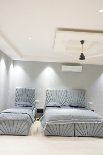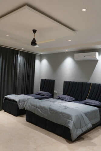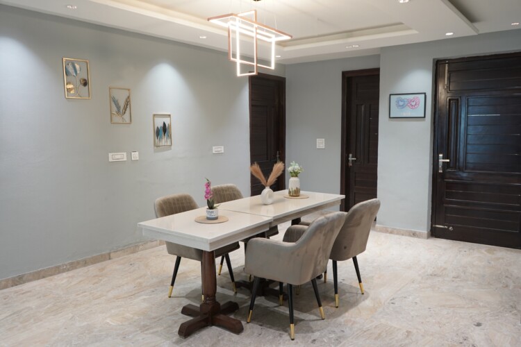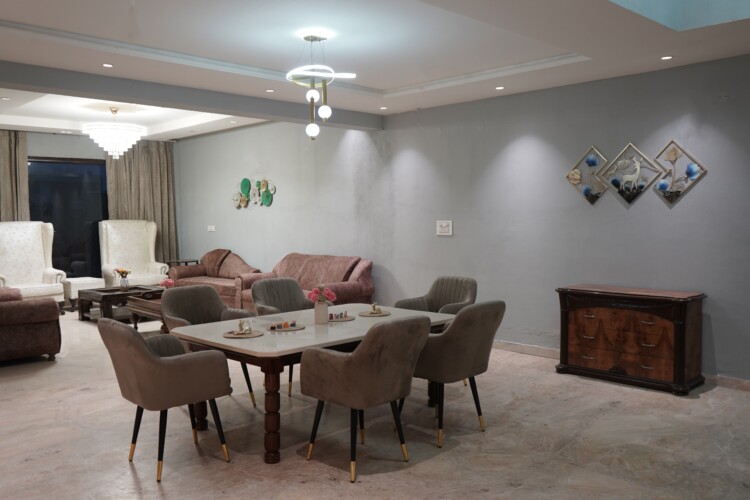 Enjoy breathtaking Aerocity views from multiple floors and polished interiors throughout, combining modern elegance with a warm, welcoming atmosphere. The villa features fully equipped kitchens, dining areas, guest sitting spaces, and top terraces, providing ample room for relaxation, meals, and gatherings.